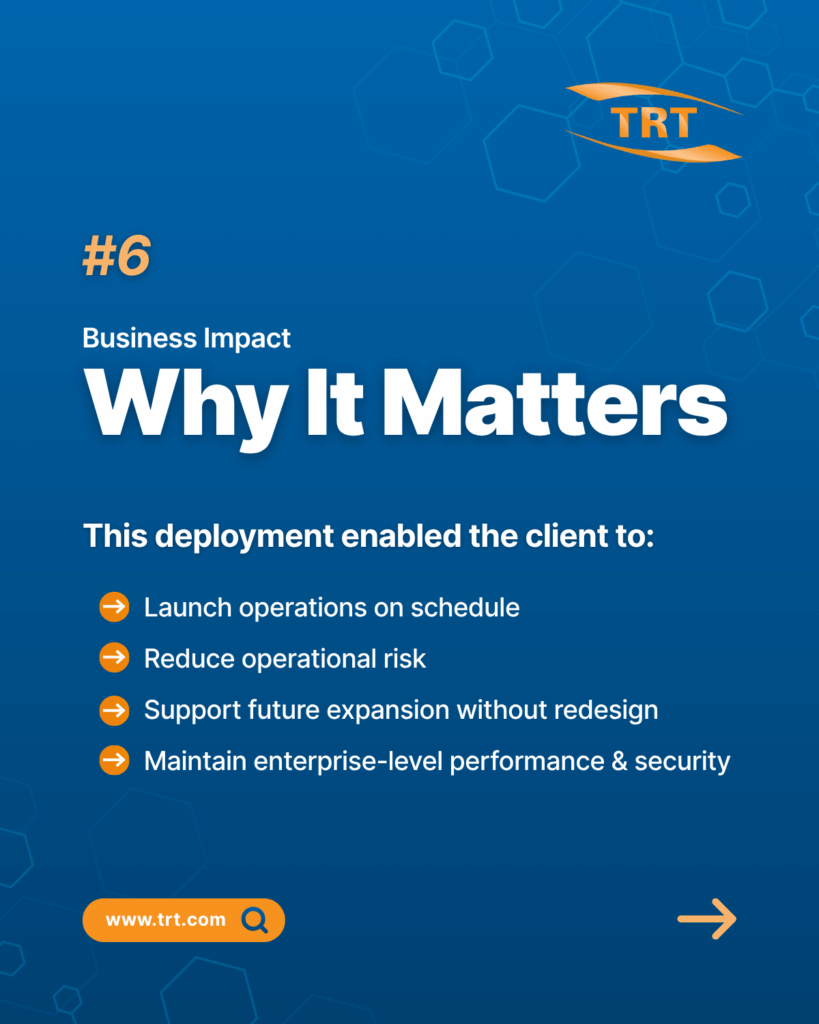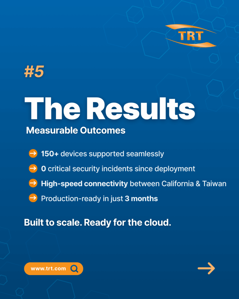 Within a 3-month deployment timeline, TRT delivered a resilient, cloud-ready office infrastructure designed for performance, security, and scalability from day one.